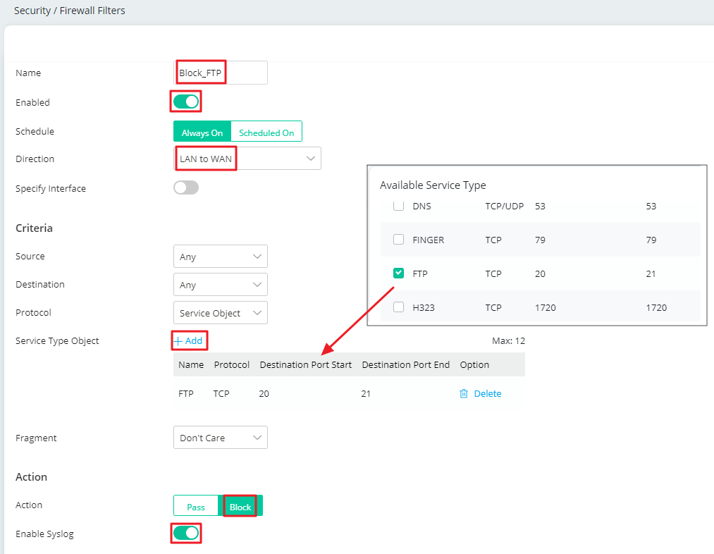 Como bloquear serviços na Firewall do router (ex: FTP)?
