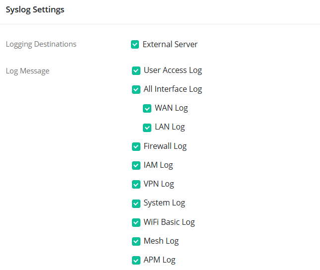 1 – Activar a opção para enviar o Syslog para um “Syslog Server” (ou “External Server”) (colocar o endereço IP do seu computador) no menu “System Maintenance >> SysLog/Mail Alert Setup” (ou “System Maintenance / Device Settings / Syslog”), e escolher o tipo de mensagens que pretende receber no log: