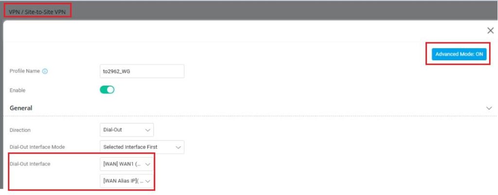 No menu “VPN and Remote Access >> LAN to LAN > Profile” (ou “VPN / Site-to-Site VPN / Profile”):