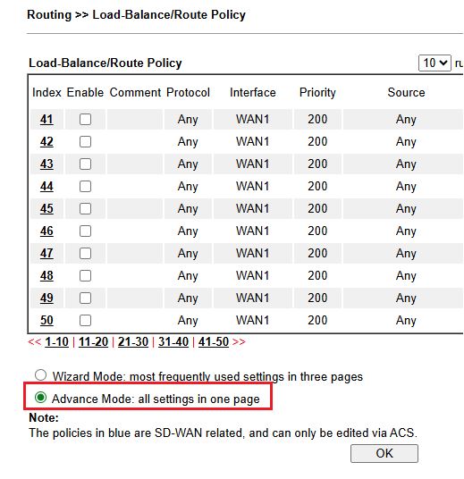 3 – Criar regra em “Routing >> Route Policy” (ou “Configuration / Routing”) conforme exemplo (para fazer NAT via IP Internet ) :