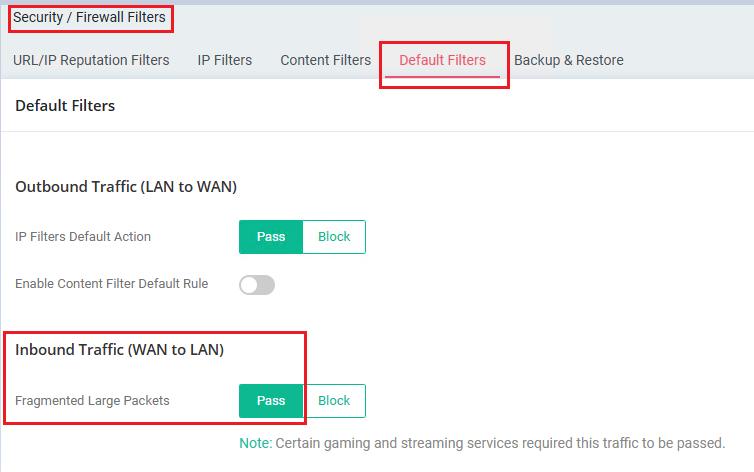 3 – Para IPsec onde utiliza autenticação PKI, é necessário activar a opção “Accept large incoming fragmented UDP or ICMP packets” no menu “Firewall >> General Setup” (ou “Security / Firewall Filters / Default Filters”):