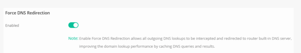 1 – Aceder ao menu “Configuration / LAN” e na respectiva LAN activar “Force DNS Redirection” em “More Settings”: