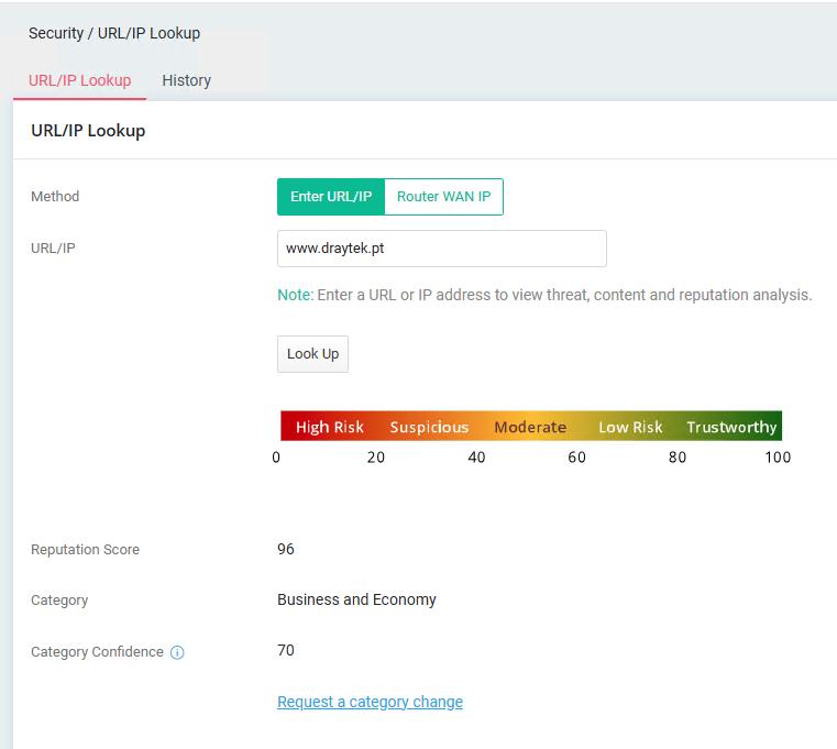 Para modelos baseados em DrayOS 5, pode verificar directamente no router no menu “Security / URL/IP Lookup”: