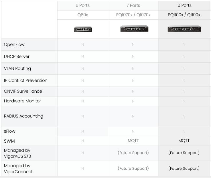 / Comparação entre switches DrayTek