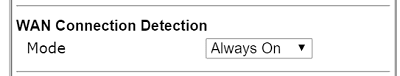 Neste modo a interface WAN nunca será considerada desconectada. Este modo é suportado para WANs com IP Estático (Static IP) ou IP Dinâmico (DHCP).