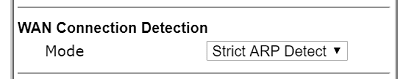 Este é o modo padrão para WANs com IP Estático (Static IP) ou IP Dinâmico (DHCP). O router envia uma solicitação ARP para o gateway a cada 30 segundos. Quando não há resposta para a solicitação ARP, ele envia a solicitação ARP a cada 5 segundos. Se não houver resposta ARP por 30 segundos e nenhum pacote WAN for recebido na interface WAN, ele considerará a interface WAN desconectada. Neste modo, a interface WAN será considerada online enquanto o gateway (modem) continuar a responder ao ARP ou os pacotes estiverem a ser recebidos na interface WAN.