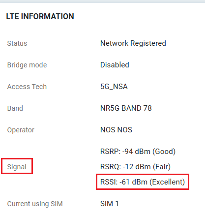 1 – Verificar se as antenas LTE estão firmemente ligadas e se a força do sinal (RSSI) do router DrayTek LTE é pelo menos : Fair: