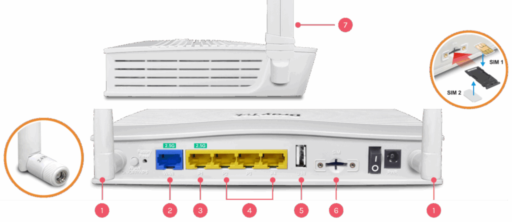 A ranhura Dual-SIM permite a utilização de dois operadores de redes móveis. Assim, no caso de uma rede móvel não fornecer conectividade à Internet, o router pode mudar para um SIM secundário e uma ligação de rede móvel.