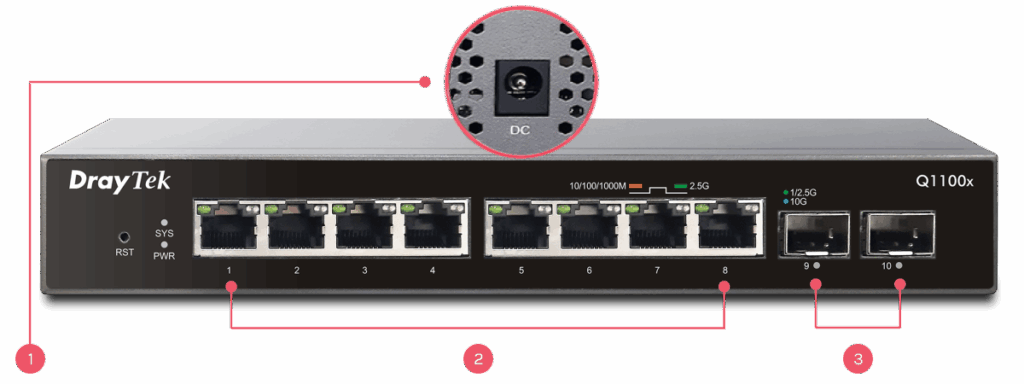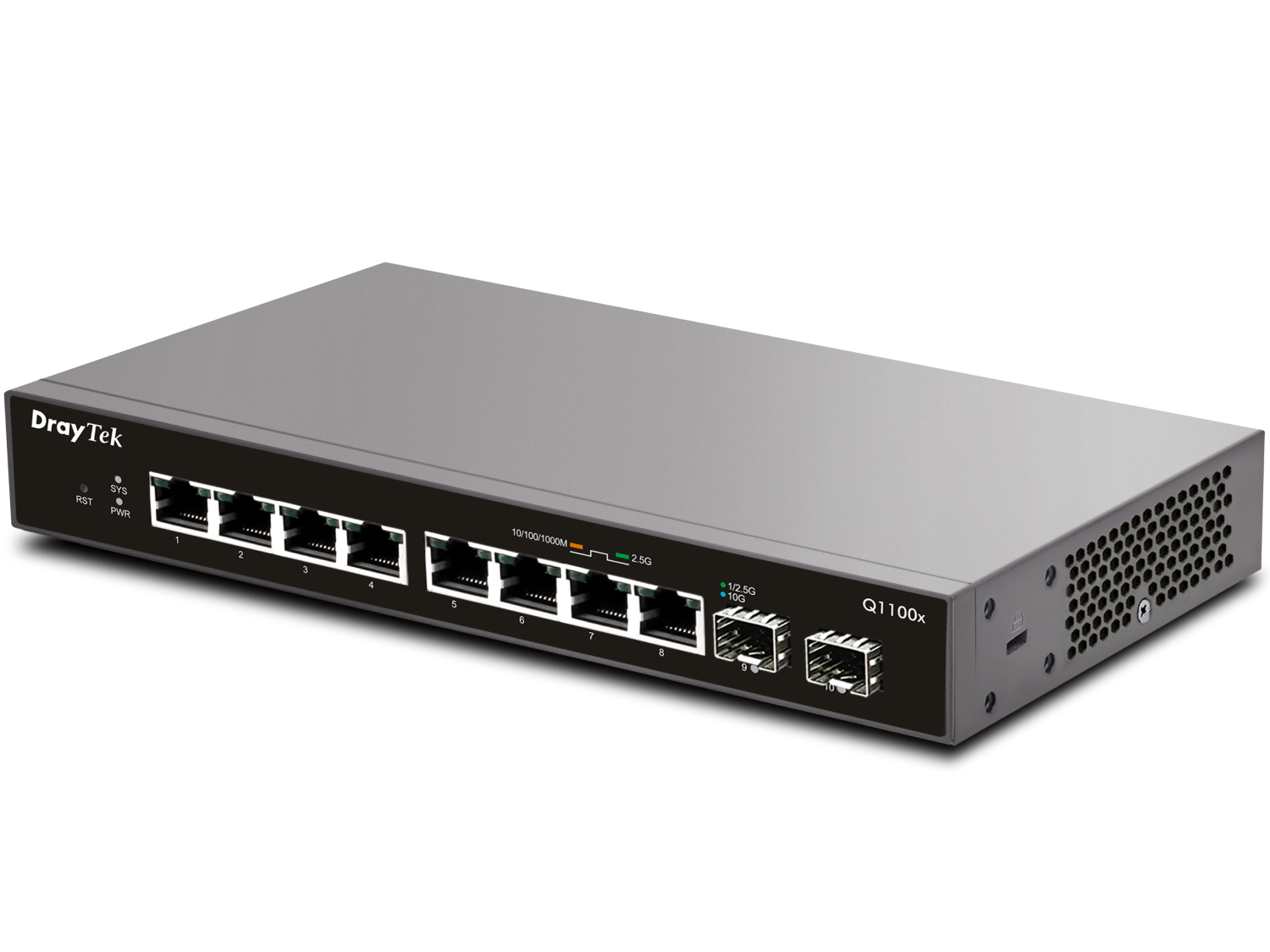 O VigorSwitch Q1100x é um switch de 8 portas 2.5G e 2 portas 10G (SFP+) com Gestão, para uma conectividade de rede fiável. Ideal para ser usado com APs WiFi 6 (por exemplo com o VigorAP 1062C), o VigorSwitch Q1100x permite um desempenho WiFi 6 completo para clientes.
